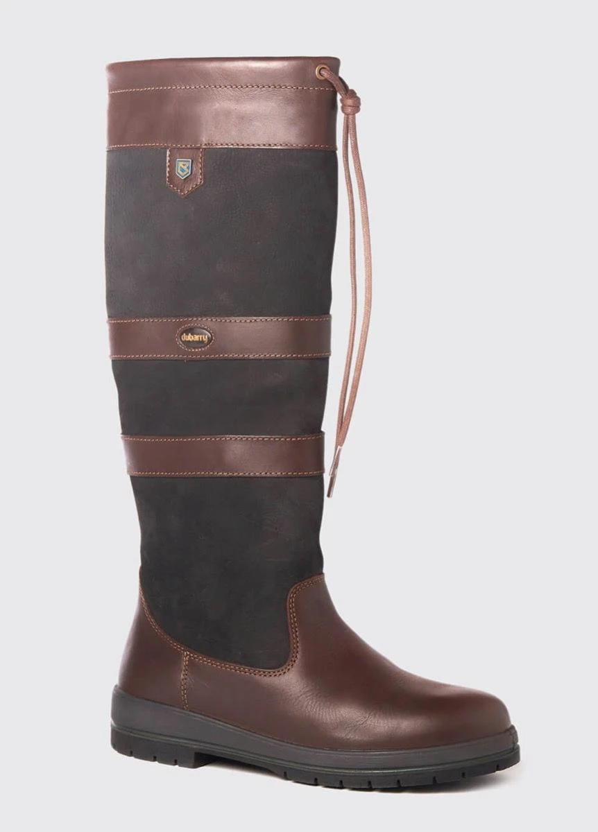 Slim Fitâ„¢ narrower calf fitting of the iconic Dubarry Galway leather country boot, a warm, waterproof and breathable staple for country-lovers. Made with DryFast-DrySoftâ„¢ leather and lined with GORE-TEX, they have extremely comfortable and shock absorbing soles ideal for crossing rough and wet terrain. Available in contrasting colours and materials, the Galway boot looks great with trousers or a skirt and will see you from muddy country walks, to a smart day at the races, festivals and beyond. Narrower calf fit version of the regular fit galway.