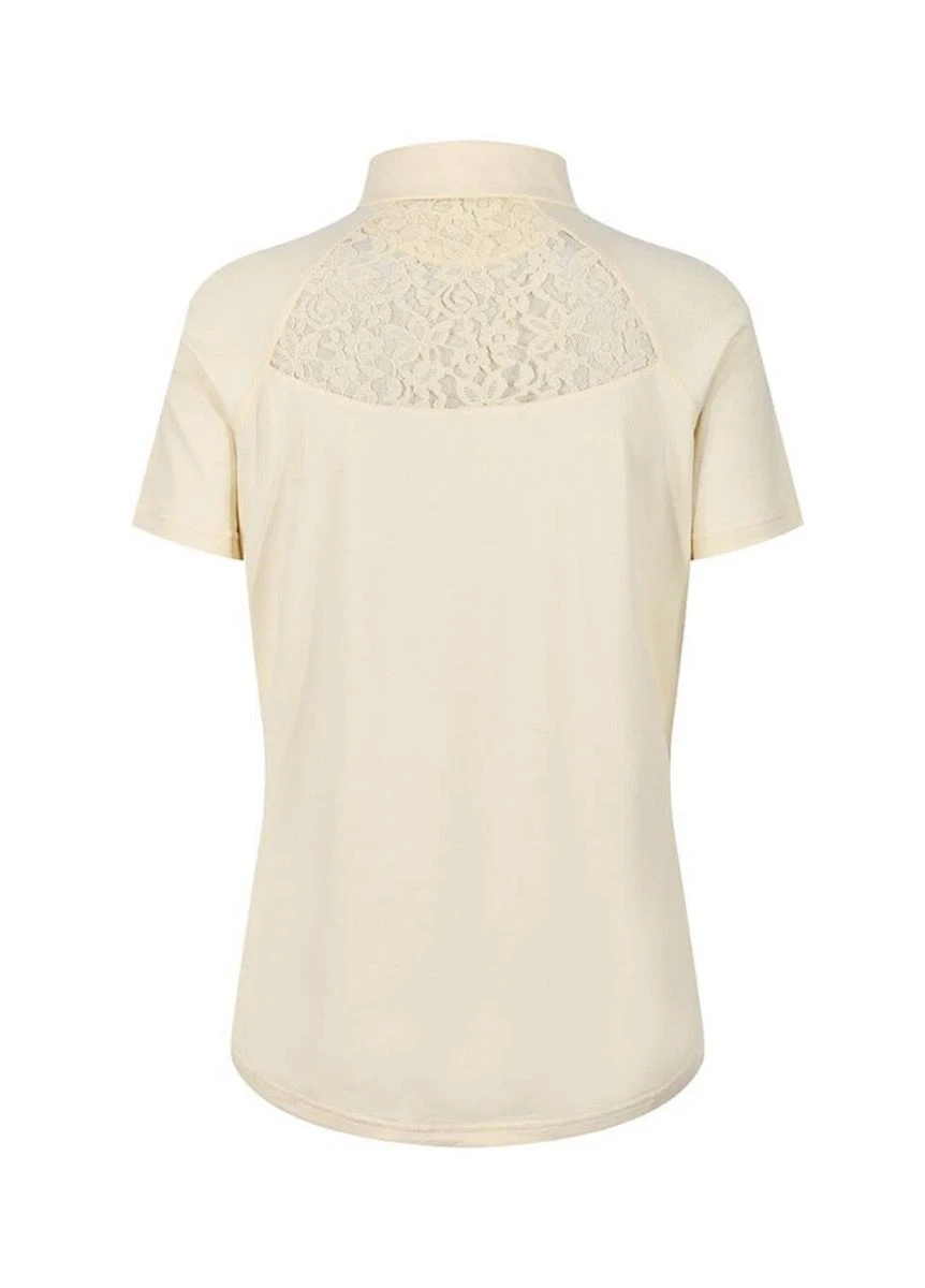 Premium, technical showing shirt, crafted from functional 4-way stretch wicking fabric, which allows freedom of movement and helps to keep you feeling fresh and cool all day. Features pretty lace back panel for ventilation and style, press button-down petite collar, loop tie stay with and easy-wear zip at neck. Machine washable. 90% Polyester/ 10% Elastane.
