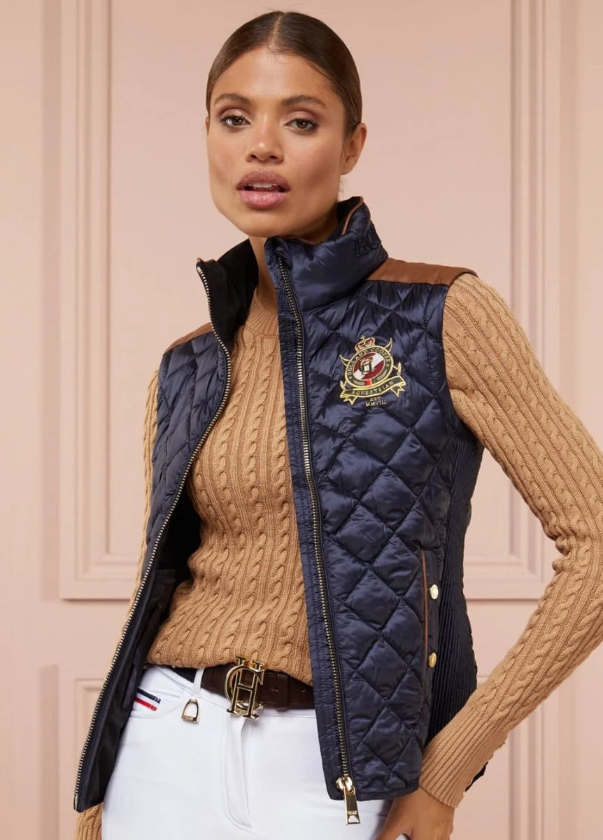 The Diamond Quilt Riding Gilet from Holland Cooper is designed with stretch pin tuck sides allowing for a close cut silhouette that is perfect for riding. The pin-tuck seams provide gentle elasticity allowing for a wide range of sizes that provide comfort without compromising on style. This gilet is perfect for on or off your horse and can be styled multiple ways.