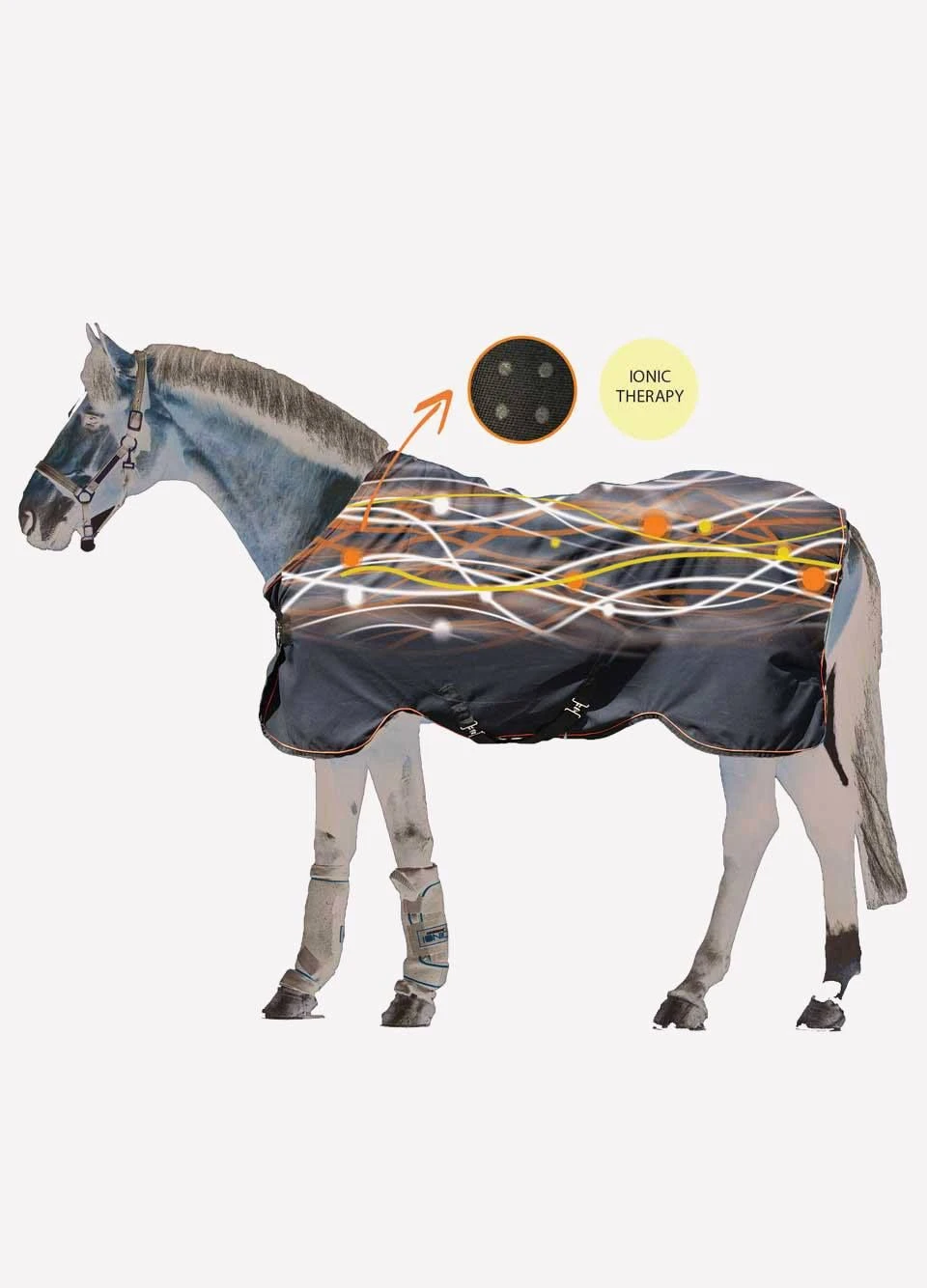 The Stable sheet is perfect for your hardworking horse, either before exercise to help him relax and get his muscles ready for work, or after to again relax him, and reduce the lactic acid levels in his body. So, how does it work? Well, the tourmaline infused rug lining releases negative ions to give a positive outcome! To help with healing and prevent future injuries, the rug combines the benefits of compression and negative ion therapy which aids in increasing metabolism and circulation, as well as upping the oxygen delivery to the cells and tissues. It also restores a pH balance, strenghtens the immune system, and as if all that weren’t enough, it removes toxins from your horse’s body which help in reducing his blood pressure!Â